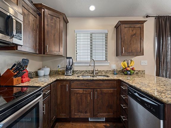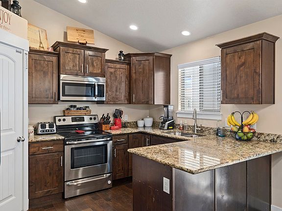 You will love this cute rambler! This home has main floor living, vaulted ceilings, granite countertops, stainless steel appliances & solar panels that will be paid off at closing. The main suite has an upgraded bathroom, which features a separate tub & shower & double sinks. The yard is fully fenced with a play gym that will stay. Great location with parks, schools & trails nearby. This is a great opportunity to own in one of the fastest growing cities in Utah. City center has new businesses & restaurants & more to come. Take a look for yourself!