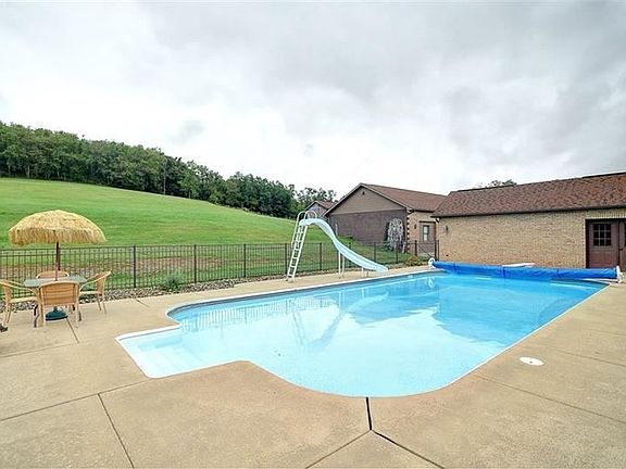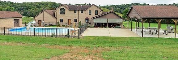 Custom brick masterpiece perched on 23 private acres. 2-story entry welcomes you to a grand split oak staircase flanked by Living & Dining Rooms. Fine exquisite details-distinctive roof lines, plaster wall, solid wood doors and rich woodwork 6-inch baseboards. 40-foot Family Room floor to ceiling stone gas-log fireplace, skylights & cathedral ceiling.Expansive stainless chef's kitchen-center island, double ovens, cooktop, walk-in 9x6 pantry, planning desk. Breakfast room leads to covered patio with canvas awnings overlooking a park-like setting. 20x40 in-ground pool 3-8 feet deep (solar cover-2018),30x12 pool house, covered picnic pavilion. Den could be bedroom. All Bedrooms boast cathedral ceilings & walk-in closets. Spacious Master Suite jetted tub & separate shower. Attached oversized 3-car garage. 35x51 basement for future plans. The 32x75 detached building with garages was a small business. Heat and utilities and small adjustment could easily be an in-law apartment.Don't miss it!