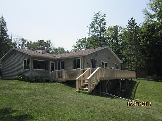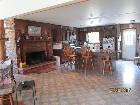 Wixom Lake Sunset Views. Sandy swimming. Excellent fishing. Open concept Ranch with large living area. Living room, kitchen/dining all open. Family room off kitchen with large windows excellent views of lake.Built in barbeque on backside of fireplace in family room. Original home on roadside was built in the late 60's. Addition on lakeside and basement built in 2001. Original home was redone in 2001 with new plumbing, some wiring, large island in kitchen, countertops, bath,windows and floor coverings. Deck 8x40 plus 4x16 wrap around on lakeside off living room and family room. New deck off basement on lower level. Large double lot with lots of room to roam. Apple trees and garden area. 8x10 shed by lake for fish cleaning and storage. Garage has a 12x15 screened in room off the side.8x12 Shed by garden.