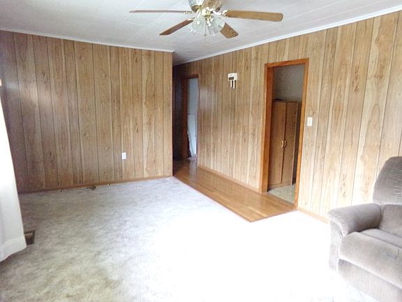 This home features 4 bedrooms, 2 full baths, living room, kitchen/dining room combination, large laundry room, large enclosed back porch and heated, utility and pantry area. One car garage in basement plus large basement area for work shop or storage area. Wood burning stove in basement . Breaker box and hot water heater in basement. There is an additional detached garage right of house. Aluminum and vinyl siding and double pane thermal windows.