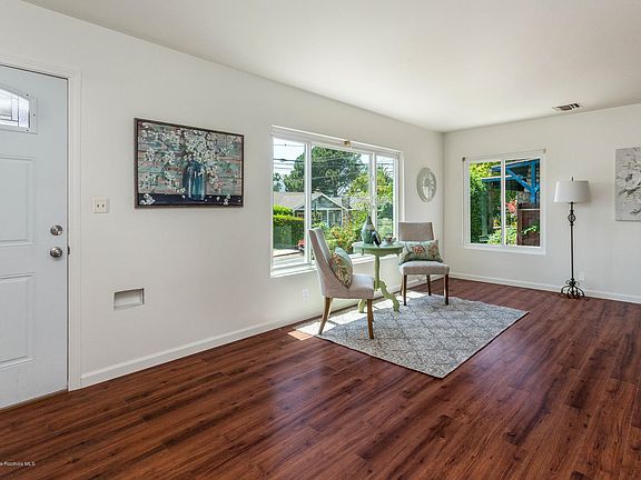 This darling bungalow is situated on the N. side of One of the historic Highway Highland Avenues. From the front porch take in the pretty Mountain View before you step into the inviting LR complete with dark engineered flooring, large picture window and an open concept kitchen spacious dining area beautiful flooring, kitchen window and door to back yard. There are two nice bedrooms with newly refinished floors and tastefully remodeled bathroom which make this a very desirable home. Extra features include a one car garage used for storage as it is not finished at the back and a very nice yard. Excellent Blue Ribbon schools nearby and easy freeway access. Parking on the South side of the street only which is great for North side owners. Solar panels are for air conditioning and payments are approximately $111.00 per month for the next two years approximately. Roof is approximately 10 years old. Copper plumbing put in 2003. Home is currently vacant and has no staging materials inside.