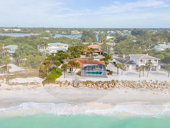 This direct beachfront Florida classic ranch is reminiscent of a simpler time where families gathered seashells and shark teeth, had beach bonfires and relaxed in the sunshine. This traditional split plan has the kitchen, living and family room at the center of the home. The swimming pool alongside the Gulf of Mexico is just steps from the sandy beach. Riprap and integrated hurricane shutters protect the shoreline and home. Well maintained and move-in ready, sited on over 1/2 an acre, with 100 feet of beach frontage, this home is located on a highly desirable section of Casey Key. Come see the nearby historic swing bridge, Blackburn Point Park, boat and kayak launch on the Intracoastal Waterway. Land and locations like this are getting harder to find, especially at this price point. The locals will tell you, it's hard to find a more special place than Casey Key, where commercial development was frozen in time. Building is reserved for single-family homes and you won't see a major hotel or high-rise condominium on the whole island. Located close to shopping, restaurants, golf and marinas, your beach life awaits.