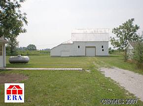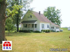 Private country living at its best! 2 Story home offers 3-bedrooms (possible 4) and separate utility room, spacious kitchen with breakfast nook and attached enclosed back porch, master bedroom on first floor, plenty of closet space throughout house, newer furnace and all new vinyl windows, detached garage with large barn for workshop, etc. Barn is clean and sturdy. Situated on over 2 acres with beautiful mature trees, landscaping and cornfield all around. Just sit on the porch and enjoy the country air!