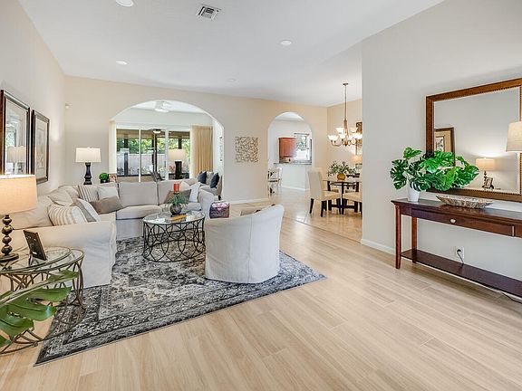 An Amazing home ~ Sure to impress!!! CBS 3 BR/2BA home boasts quality updates incl Kitchen, Baths, Porcelain Flooring & so much more! Freshly painted interior. Enclosed Sunroom overlooking beautifully landscaped/hardscaped private backyard. 10'+ ceilings. HVAC replaced 2021. Open Floorplan. Arched Passages. Hurricane protection... this home is move-in ready and has everything you're looking for! Highly sought-after 55+ gated community located close to Turnpike, Wellington amenities & Lake Worth Beach.