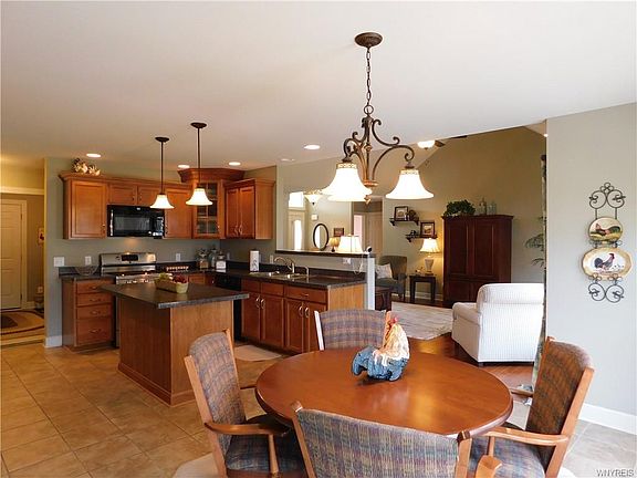 Custom built ranch! Impeccable in every way. Beautifully decorated throughout! Attention to every detail! This is what you will find the minute you enter the elegant foyer! Dining room and foyer entrance are defined by a perfectly placed pillar. Tray ceiling adds a certain ambiance to this elegant dining room. Spectacular living room with vaulted ceiling and gas fireplace! The master bedroom with tray ceiling, is situated away from the other 2 bdrms offering total privacy. Master bath with high vanity and glass shower. Large walk in master closet. You will love to entertain in this beautiful kitchen with center island. Kitchen appliances incl.! Finished Basement 32 X 24 is a dream with surround sound. Perfect for a media room! Additional massive storage ! 12 x 12 ofc. Sprinkler system.