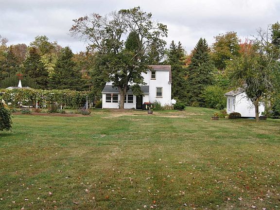 Charming move in ready cape cod with 2+car detached garage on 1.34 acres. Relax or entertain your guest under the grape arbor patio that overlooks the private yard or on the updated three seasons room that leads to the eat in kitchen with dishwasher, electric stove, double sink, garbage disposal, recessed lights and ceiling fan. Updated full bath with tub/shower combination, and pedestal sink. The formal living room, den/study, and bedroom all with hardwood floors complete the first floor. Upstairs you will find two additional bedrooms with wood floors and walk in closets. The finished walk out lower level includes a family room with built in bar, storage room, and work shop. Updates include freshly painted interior, heating system, hot water heater, well pump, windows, doors, and front porch.
