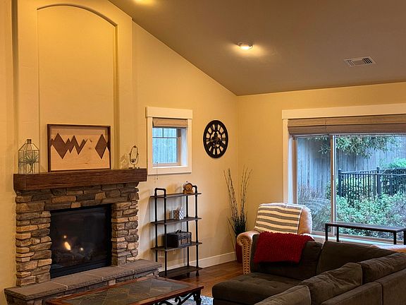 Beautiful home in a desirable neighborhood. Living space features open floor plan with dining area, kitchen and living room space. Gas fireplace makes for a cozy relaxing home. Large backyard with deck that is plumbed with gas for a BBQ and trees provide privacy from neighboring properties. Beautiful wood floors through out and carpeted bedrooms.