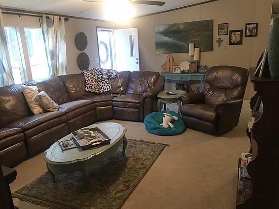 4 bedroom, 2 full bath, 1,800 sq ft mobile home located on a large 6 acre parcel. 2 living rooms, very modern finishings. Large walk-in closets in all bedrooms. Very spacious! Large back porch, great for entertaining guests and grilling out! Nice rolling hills. Secluded driveway. 12'x24' storage building/shop.