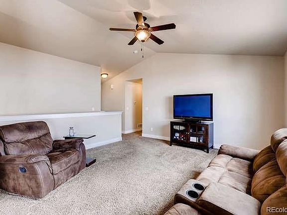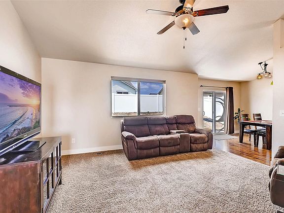 Why wait for new construction? This home is clean & move in ready! Easy access to I-25 & minutes to Rice Elementary School. This Ranch home has vaulted ceilings in the living room, kitchen & dining. Kitchen & dining features stylish wood-laminate flooring, range/oven, microwave, refrigerator & dishwasher included. Full basement, 2 car garage, front yard landscaping including sprinkler system. Non-potable water through HOA for all irrigation.
