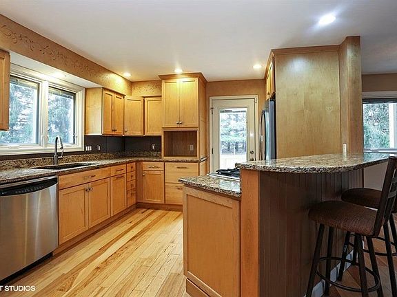 Quality built Glidden Construction home completely updated in 2009. Situated on 2 country acres, this 3 bedroom 2 bathroom home features an open floor plan which is great for entertaining or just hanging out with the family. Sun drenched living room boasts vaulted ceiling, wide plank hickory floors (also in dining room and kitchen) and wood burning fireplace with travertine tile surrounded by built-ins. The updated kitchen has granite counter-tops, custom maple shaker-style cabinets and stainless appliances. In 2009 an office/den, 3/4 bathroom and finished laundry room were added off the kitchen. The basement could be finished for additional living space. Relax and enjoy views of the professionally landscaped yard from either the front or back cedar wood decks. This truly is a place to call HOME!