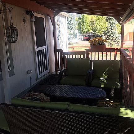 Adorable & affordable manufactured home located within the Pine Trailer Park. Upgraded interior with beautiful laminate flooring & vaulted ceilings. Roomy eat in kitchen and breakfast bar for more seating. Enjoy the wild life and the mountain views on the cozy covered deck. This is a 55+ community with Clubhouse. Buyer must qualify for residency within park. Total space lease is $350 which includes water, sewer and trash. 2 pet limit.