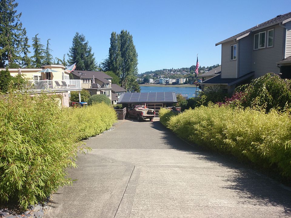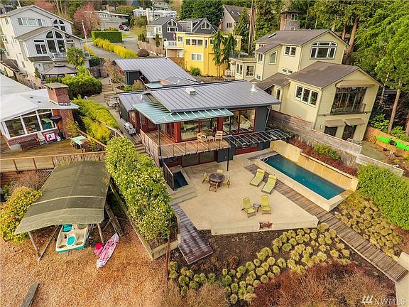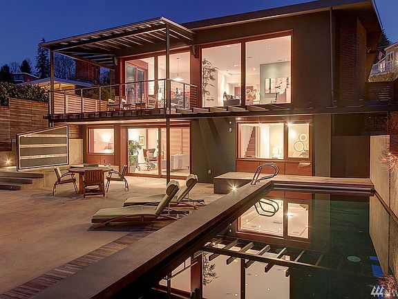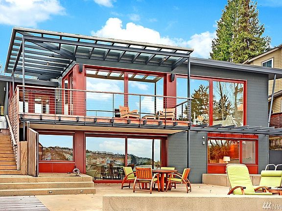 This beautiful NW contemporary is nestled on Seattles gateway to the Puget Sound with 57 of waterfront.Architect Cheryl Hughes has woven together a confluence of sustainable hardwoods, glass, concrete and steel to create the warmth of home within a piece of living art.The menagerie of sliding doors, hardwood decks and concrete patios in both the front and back of the house help to blur the lines between inside and out giving way seasonal expansion of the home. Deep water buoy included.