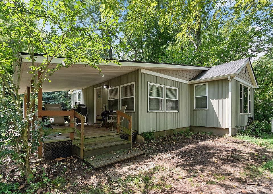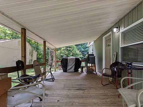 Discover your serene sanctuary in this charming ranch-style home, nestled on over 6 acres of mature, wooded land with picturesque views of Poplar Creek. This inviting residence has been meticulously updated to blend modern comfort with rustic charm, featuring newer siding, roofing, and windows. Inside, you'll find a beautifully remodeled kitchen with crisp white cabinets and sleek stainless steel appliances. The home boasts hand-hewn beams, rich hardwood floors throughout, and an updated bathroom with contemporary fixtures. New well pump and bladder.