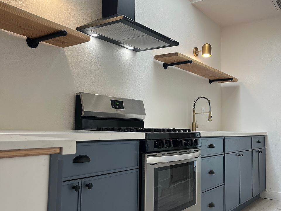 This is a newly remodeled duplex located within a nice quiet four house little community in La Mesa. It features a remodeled kitchen, high ceilings, and fireplace, and spacious deck. There is one off-street parking space that comes with the house and it is tucked in the back corner of the property so is very private and quiet. There is air conditioning and in house washer / dryer. The unit is the top floor unit and has a huge living room that opens up onto a large back deck. Electric and gas included. Flexible lease terms Pets welcome with refundable pet deposit