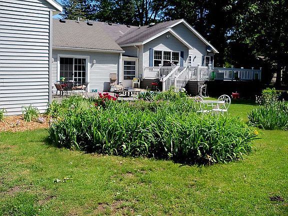 REALLY LOVELY 1 ACRE SETTING, MATURE TREES, PERENNIAL FLOWER BEDS. OPEN FLOOR PLAN WITH EXTRA LARGE FAMILY ROOM WITH 1/2 BATH AND MINI KITCHEN WITH WET BAR, THEATER LIGHTING WITH DIMMER SWITCHES AND SLIDING GLASS DOORS TO LOWER DECK AND GARDENS. COUNTRY KITCHEN W/SNACK BAR PENINSULA, AND GRANITE COUNTER TOPS WITH COMPUTER /DESK /TV CENTER. WOOD LAMINATE FLOORS IN KITCHEN, LIVING AND HALLWAY, OAK HARDWOOD IN DININGROOM/DEN,CERAMIC TILE IN SUN ROOM AND FAMILY ROOM. FORMAL DINING ROOM/DEN WITH GAS/WOOD MARBLE FIREPLACE WITH OAK MANTLE AND WINDOWS & DOOR AND SKYLIGHT. SEMI FINISHED BASEMENT WITH PLAYROOM AND WORKSHOP/OFFICE. CEILING FANS THROUGHOUT AND DIMMER SWITCHES IN LR & FR, EXTRA LARGE ATTACHED GARAGE WITH TWO CAR SPACES AND 2 CAR SPACE BEHIND TO HOLD CAR PROJECTS, ETC WITH SECOND STORY TO GARAGE FOR EXTRA STORAGE,NEW ROOF IN 2015. PAVED CEMENT DRIVEWAY. WOOD STORAGE SHED IN BACK, SEAMLESS METAL SIDING ON HOUSE AND GARAGE, NEW CENTRAL AIR IN 2017.