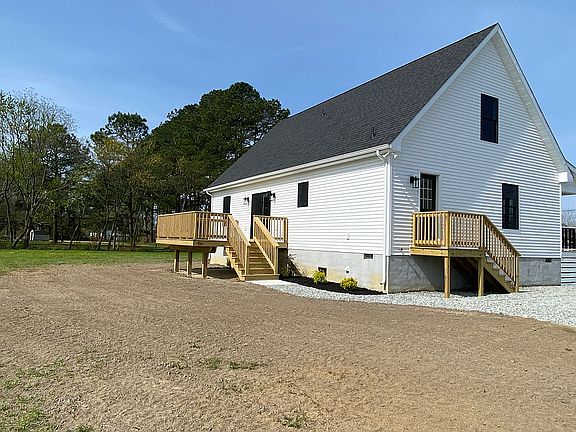 Brand new 4BR/3BA contemporary on 2.9+/- ACRES! Move right into your dream home - wide open floorplan, upgraded finishes inside and out - beautiful and durable LVP flooring throughout, gorgeous on-trend contemporary farmhouse exterior - black windows & white siding, huge front porch, rear deck overlooking your expansive yard. Spacious living room w/fireplace opens into the dining room. Dreamy kitchen w/crisp white cabinetry, high-end quartz counters, custom backsplash, farmhouse sink, stainless steel appliance package. First-floor owner's bedroom boasts a walk-in closet w/built-in shelving, luxe en-suite bath - soaking tub w/tile surround, step-in shower, double-sink vanity w/quartz tops. A 2nd 1st-floor bedroom and 2nd full bath w/quartz countertops. A laundry room completes the first floor. Upstairs, a roomy loft, 2 more nice-sized bedrooms and a 3rd full bath. Public water & sewer, but no city taxes! Great location - minutes to the best that Somerset County has to offer - boating, world-class fishing, crabbing, incredible state parks - a true paradise for nature lovers, photographers, boaters, fishermen and anyone who wants to enjoy the more relaxed pace on the Eastern Shore - from the beaches to the bays and beyond! About 35mi to NASA/Wallops Island, and the beloved Chincoteague Island, and the incredible wild horses and sandy beaches of Assateague Island. Sizes, taxes approximate.