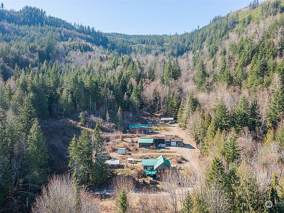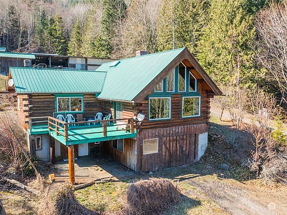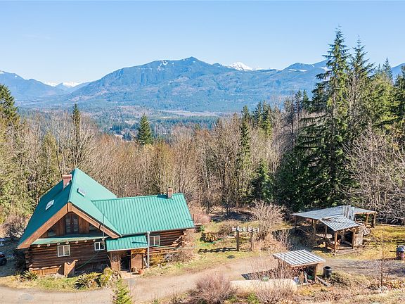 High Country off grid living with skyline views of Mt Baker & the Cascades. Custom built with timbers used from the lands on 80 acres of forest crafted for ultimate privacy! Not just 1 but 2 cabins fully set up with comforts found in an urban setting. Shop space to work in, a carport for your vehicles. Main cabin features a daylight basement, large kitchen & dining, floor to ceiling custom local river rock fireplace, direct views of Mt Baker, deck for relaxing, upper loft. Second cabin is rustic & fully functional. There are cut trails to hike right from the cabin, year round creek, wildlife, a lifetime of firewood pure nature at your doorstep 365 days a year. The hard work has been done by former owner estate sale sold in "as is" condition