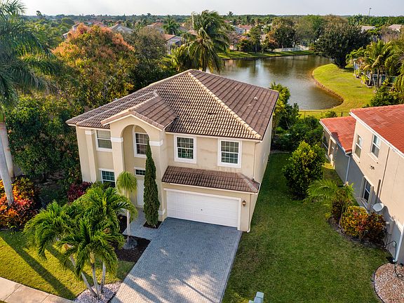 MUST SEE! This beautiful 5 bedroom home that Wellington has to offer in the saught after development of the Grand Isles. It has luxurious granite countertops in the kitchen. Very large open floor plan. All rooms on the second floor and the master suite and bedroom 2 has on suite bathroom. Hurricane windows throughout, and an amazing view of the lake. Schedule your appointment now! This home wont last.