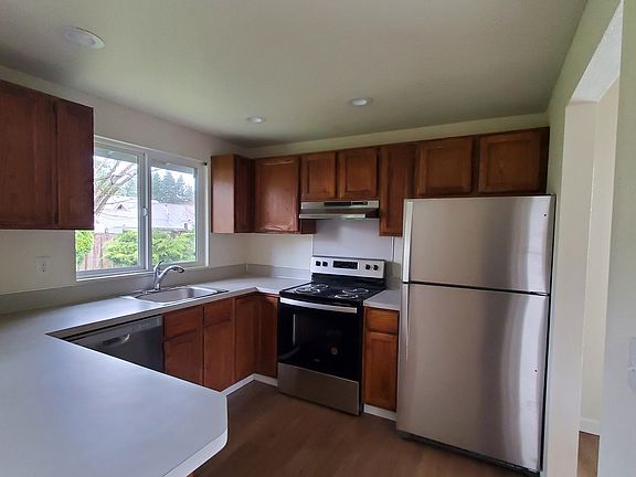 This single-family home has 3 bedrooms, 2 bathrooms, living room, dining room and kitchen. Kitchen appliances include: refrigerator, stove / oven and dishwasher. Laundry room with hookups for washer and dryer. Neutral colors throughout the home. Gas Heat/Hot Water. Mini blinds on all the windows, and two car garage with garage door opener and a fenced backyard. Close to shopping, parks and easy access to I-5. We do not provide washer and dryers. Price is based on two adults in household. No month-to-month leases. All leases are 12-month contracts. Application Fee: $40 per adult 18 yrs and Older Pets allowed with monthly increase. Requirements: - Good credit and Rental History - Employment & Rental Verification required Tenant is responsible for: - All utilities - Must obtain Renters Insurance