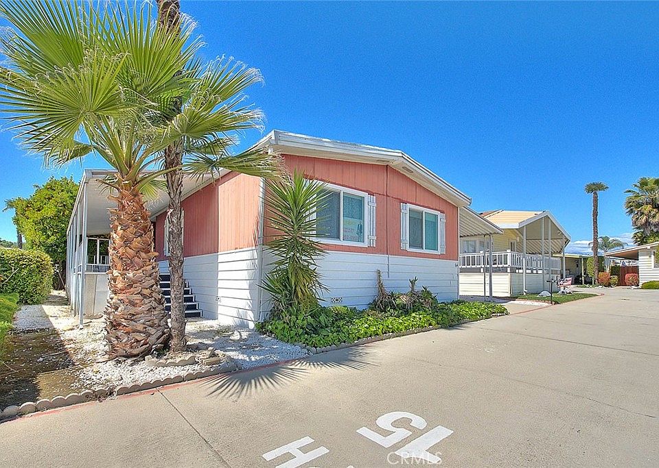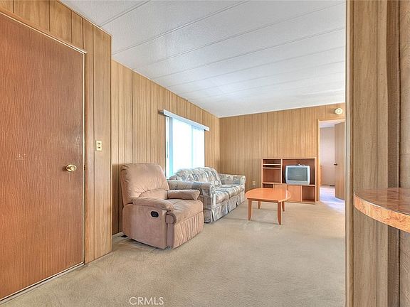 Walnut Hills mobile home park. 3 bedroom 2 baths built in 1975 by La Jolla. Rebuilt front raised deck with carpet and an aluminum cover. 2 car tandem carport with a storage shed at the back. Productive orange tree. This home is priced to sell and in mostly original condition. Newer beige carpet, dual pane windows. The kitchen has a small breakfast bar. The refrigerator is included, newer stainless-steel dishwasher. Gas built-in cook top with a vented hood. Central air and heat is original. Separate living and family rooms, dining room with a built-in china cabinet. The primary suite boasts an oversized bathroom and a walk-in closet. Vanity area, private toilet and bathtub. Two additional bedrooms with a hallway bathroom. The family room has a walk behind wet bar. Individual laundry room with a stacked washer and dryer, which is included. This is a family park! Space rent is currently $1300 but will be $1400 with the new owner. Subject to interview with the park manager. Highly desired Walnut Valley Unified School District! Award winning and one of the best districts in the state for test scores!