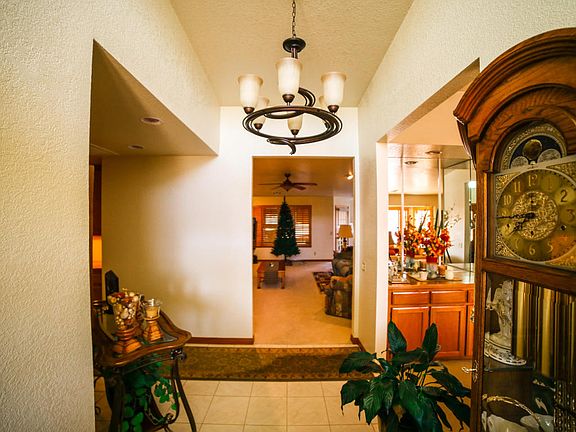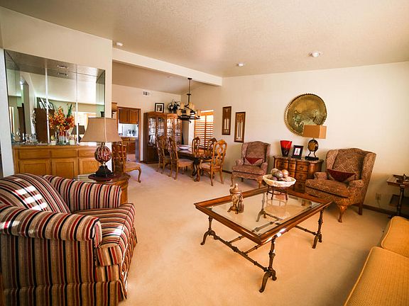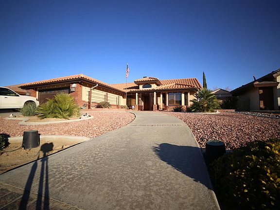 This charming 3 bedroom 2 bath home offers a beautiful drought tolerant landscape exterior. Tiled Entry into your spacious family room with plantation shutters and fireplace. Kitchen offers plenty of counter space, breakfast area, tile flooring, oak colored cabinets, and black and white appliances. The back yard features 2 over sized sheds, a grassy area, and well maintained bushes. Hallway is lined with tile, and features plenty of storage. Guest bathroom has dual sinks and lovely fixtures. The large laundry room is well lit and has plenty of storage. The master bedroom is tranquil and includes a fireplace to come home to and relax. Master bedroom also has a Master bath with dual vanities, Large Tub and stand alone shower.