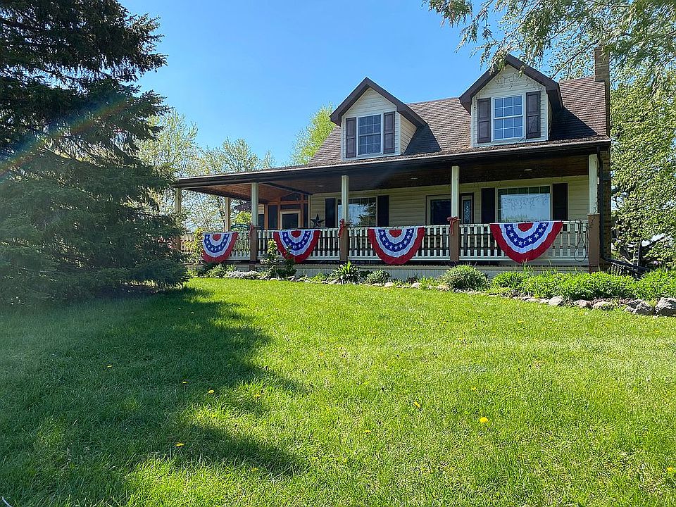 Beautifully maintained 2400 sq ft home sitting on 34 acres. Gorgeous kitchen/dining room combo with quartz countertops and stainless steel appliances, French doors that lead to 288 sq ft screened porch. Living room boasts of fireplace with propane insert and tongue and groove pine walls. Huge Master bedroom upstairs with completely updated bathroom, tiles shower with steamer jets and multiple shower heads and walk in closet, all connected to a quaint little sitting room. Pole barn is 54x60 and has 3 different height doors to park RV’s, tractors and quads, has a loft for extra storage. There is a shop in the back of the barn. It has cabinets and granite counter island and tongue and groove pine walls. It is heated with two forces air heaters fueled by propane. Another sectioned off area to work on vehicles. Home sits off a paved road with little traffic and beautiful sunsets.