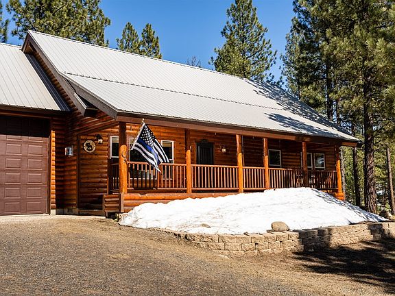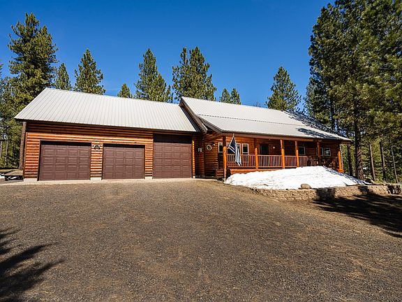 Here's your chance for a cabin in the trees! 1,827 square feet log-sided cabin, sits on 7.32 acres with 3 bedrooms, 2.5 bathrooms, 3 car attached garage (insulated/heated) and a separate detached 20'x30' garage, with power and a one car carport. Room for all of the toys! 2 story vaulted living room, with tongue and groove ceiling and walls. House has been well maintained and the pride of ownership shows throughout. County maintains the roads, so there are no annual association fees. Only a mile and half outside of New Meadows, so quick access to Brundage Ski Resort, McCall, Lost Valley Reservoir and more. Some furniture included, mostly log style, call agent for a list.