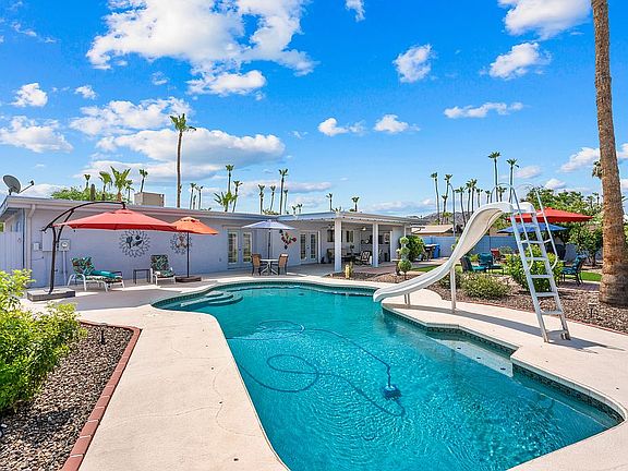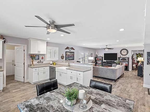 Entertainer's Dream! Stunning 3 bedroom 2 bathroom home that is move- in ready with upgrades throughout. An open floor plan with the kitchen and dining area as part of the great room. Brand new Plantation Shutters installed 7/7/21. The kitchen includes beautiful white shaker all wood cabinets with soft close doors, quartz counters, NEW farm sink, and upgraded Samsung black, stainless steel appliances. Large master suite with a sitting area and walk in closet. Master bathroom has dual sinks, large shower, and a jetted Jacuzzi tub.The backyard includes a beautiful covered patio for indoor/outdoor entertaining, large pool with waterslide, gas fire pit, putting green and mountain views!