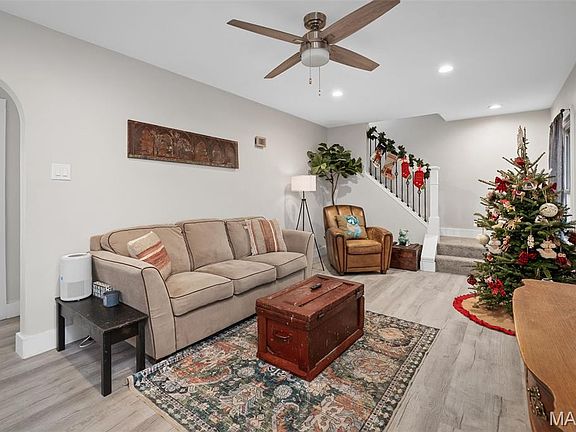 Step inside this beautiful 4 bedroom, 3 bathroom home in the sought-after Pattonville School District, offering the perfect blend of style, space, and comfort. The thoughtful split-bedroom layout makes it ideal for families who want room to spread out while still staying connected. At the heart of the home is a stunning chef-inspired kitchen featuring 42” custom cabinetry, a sleek tile backsplash, stainless steel appliances, gas range, center island, and warm pendant lighting. Just off the kitchen, the cozy step-down living/dining area leads to a private primary suite, creating the perfect retreat from the busier parts of the home. Upstairs, a spacious fourth bedroom with its own half bath serves as the ultimate flex space—ideal for guests, a home office, teen suite, or hobby room. Outside, the fully fenced backyard offers plenty of space to relax, play, or entertain, and the 3+ car parking pad provides convenience and flexibility for multiple vehicles. With an unbeatable location near the airport, major highways, restaurants, and shopping, this home truly checks all the boxes. Move-in ready, beautifully updated, and priced to sell—don’t miss your chance to make it yours!