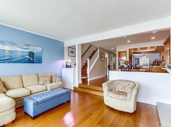 Start enjoying the Huntington Harbor lifestyle today in this pristine Seagate waterfront town home! By far one of best lagoon views in the complex. A truly 180 degree sweeping view from patio, living room, kitchen and master suite. The kitchen, with custom cabinets, and two of the three bathrooms have been remodeled. Gorgeous bamboo floors in all rooms with exception of carpeted bedrooms. This particular unit pulls in plenty of natural light. Relax in your spacious living room and enjoy the fireplace surrounded by stacking stones and marble hearth. Other upgrades include custom cabinetry in living room, recessed lights, ceiling fans, closet organizers, wainscoting, crown molding & newer double pane windows and slider. Park in your private detached 2 car garage with roll up door and remote control...plus ample guest and unassigned parking. This HOA includes 2 clubhouses, 2 pools (main pool heated year round), spa, playground, 6 tennis courts and pocket parks. The current owners have a Duffy boat, and have successfully rented a slip since they purchased in 2008. Duffy boat may be available for sale, not included in purchase price.