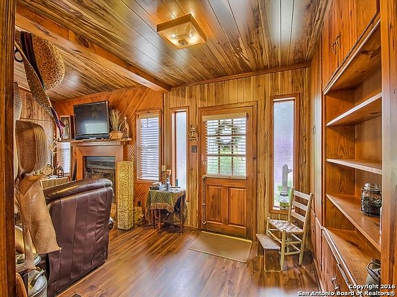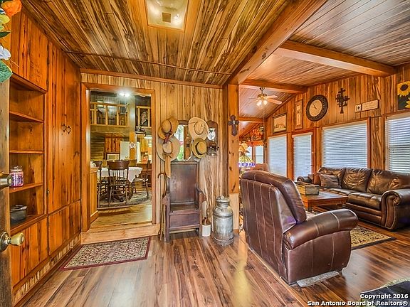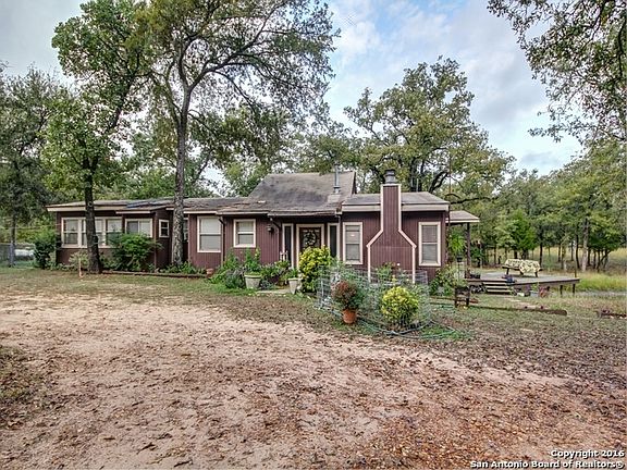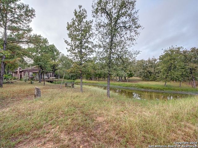 : TOO GOOD TO BE TRUE! A mountain cabin perched on a pond on 5 unrestricted, wooded acres in So Texas. This unique charmer, built by the the original owners, has custom touches throughout and is as warm and cozy as a cup of hot cocoa. High wood ceilings, an open floor plan, bar with seating means a house made for entertaining! Outbuildings include 18by32 workshop/mancave with attached 20by20 Carport, another 25by30 shed, 2nd carport, pens and barns/sheds for livestock. Hurry before someone else falls in love!