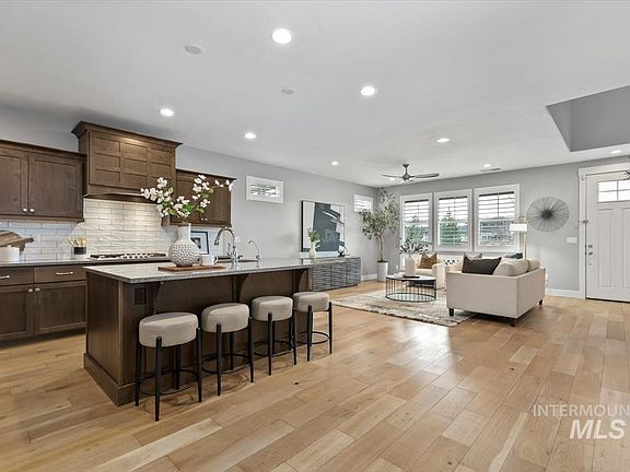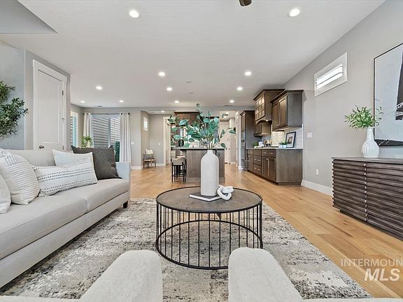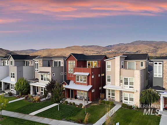 Nestled in the heart of the Barber Junction community of Harris Ranch, minutes from local shopping, exquisite dining and a short walk to the Boise River! Pride of ownership abounds in this low-maintenance entertainer's paradise highlighted by multiple gathering spaces both inside and out. Welcoming front porch opens into a sun-drenched great room ideally situated for privacy and functional sophistication. Engineered wood floors span the main level flowing into the gourmet kitchen feat. a gas range, walk-in pantry and direct access to a covered patio. Main level suite accented by a charming brick wall and electric fireplace is the perfect home office, guest space or 2nd master. Venture upstairs to a generous master retreat and ensuite complete with dual vanities, tiled shower and walk-in closet. Three additional bedrooms and flex spaces create a versatile layout designed for everyday living. Indulge in seasonal al-fresco dining on the open-air rooftop deck set against a backdrop of spectacular panoramic views.