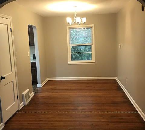 Vinyl siding. Newer roof. 92% efficient furnace, central air. Hardwood flooring and tile main level. Updated kitchen and bathroom 3 years old. Vented glass block window in bath. Updated Kitchen fully equipped. Unfinished walk out basement with fenced back yard that backs deep wooded area. Washing machine and dryer hook ups. 11' x 12' front bedroom, 9'6" x 12' rear bedroom. No pets greater than 35 lbs. and no aggressive breeds of animals. Pet rent and pet deposit determined by type, age, breed and weight of pet(s). Not a Sec. 8 rental, but thank you for your consideration. Not Sec 8 listing. Utilities in resident's name. Non-smoking house. Showings Monday through Thursday 9A - 3P and Fridays 9A - Noon. Lawn and landscaping resident's responsibility.