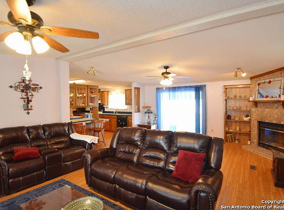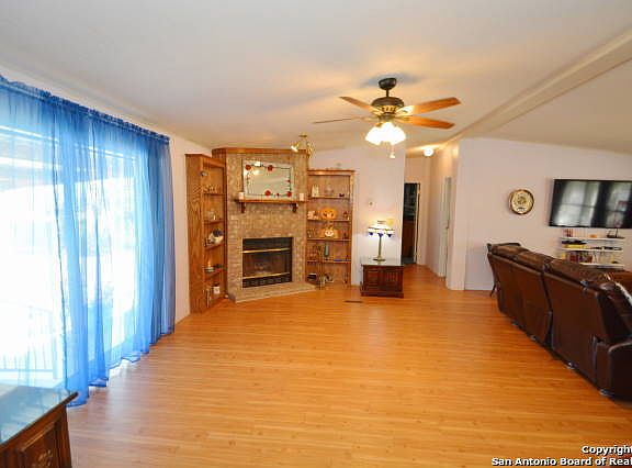 **SCHERTZ-CIBOLO-UC ISD** This is absolutely a must to see in person!! Claim your piece of Texas Heaven! Well-maintained, all-electric 3 bed/2 bath manufactured home located on gorgeous 4.36 +/- acreage (level & fully fenced!), wonderful shaded oak trees, and NO City Tax and NO Building Restrictions! The only property currently listed in SCUC ISD with this kind of acreage! Perfect to live in as-is, or while you build your dream home, or add more living structures on the property for the family or rental income. It could also be an investor opportunity, or have your home & business (including trucks) in the same location!! No restrictions for livestock &/or poultry. Ag exemption available for honey bees. Potential for incredible self-sustainability! Plus, it's conveniently located about 15 miles south of the back gate of Randolph AFB, and near to I-10/Seguin or 1604/San Antonio. Country Living/City Convenience!! This is a well-maintained, all-electric manufactured home with 3 bedrooms, 2 baths, and large Living area with fireplace! Huge Kitchen with Island and lots of counter top space and storage. Natural light!! Pretty faux wood linoleum flooring throughout for easy living. Carpet in bedrooms. There is a 70 x 15 covered patio and jacuzzi to enjoy nature and seasonal Texas evenings. Dog Run for your 4-legged best friend(s). The shop is 20x30 and fully electric! New hot water heater installed Dec. 2022! Conveniently located about 15 miles south of the back gate of Randolph AFB, and convenient to I-10/Seguin or 1604/San Antonio. Light, bright, open floorplan! Carport attached to this area. Roof was replaced. A barn and shop have been built on the property for extra storage and room for all your stuff! Septic pumped August 2022. Perfect for placing additional living spaces on the property, or living in while you build your dream home! Excellent Schertz-Cibolo-UC ISD schools. Convenient to RAFB, SAMMC, IH - 10 to Seguin and Houston or San Antonio and 1604. HURRY!!