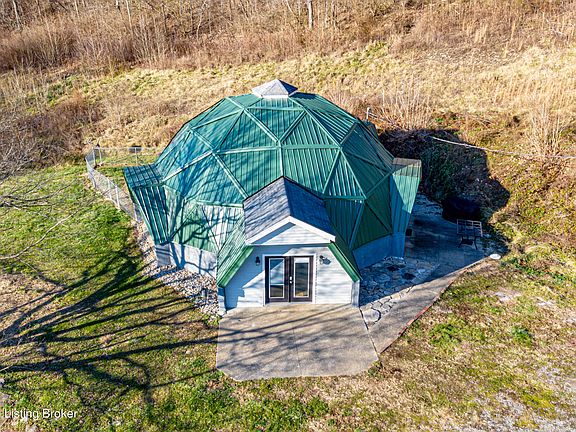 Geodesic Dome Home on 15.14 wooded rolling acres. 3BR/2BA home with 24x32 metal pole barn. Updated metal roof/siding, updated kitchen, updated bathrooms, updated flooring, updated furnace/central air and much more. MUST see this unique property. Only minutes to downtown Carrollton, Point Park with boat ramp to the Ohio River and General Butler State Park.