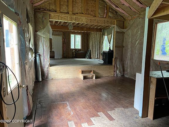 EQUITY BUILDING OPPORTUNITY!!! This 2016 built home offers 1312 sq ft. The home is shelled in, insulated and on sauna tube foundation. Seller has had the power brought in up to the home. Finish the home how you wish because no interior walls or framing has been done. There is no septic or well installed. Seller heated the home with a wood stove that is no longer there. Seller's loss and your GAINPer seller verbally; the foundation is sauna tube. BTV Building has no value and is detaching at right wall by upper loft. Seller is selling property for land value only.