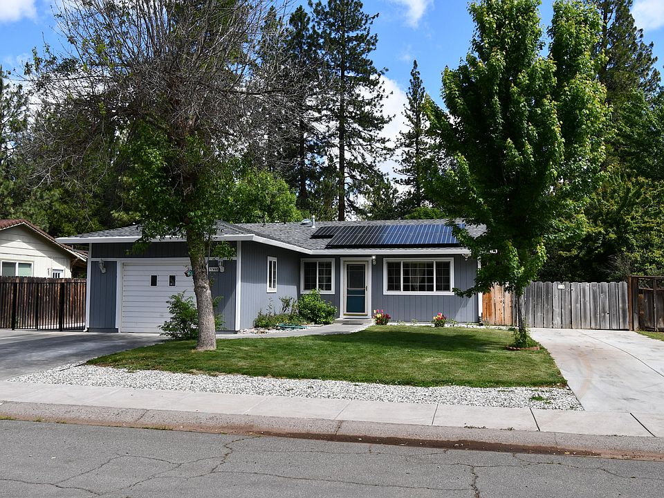 Curb appeal off the charts! Gorgeous three bed, two bath home with grid tied, owned solar, 3/4'' Brazilian teak flooring, elegant Cherry wood kitchen cabinets, granite slab counter tops, and beautiful Mexican tile flooring in both bathrooms. Primary bedroom suite opens to backyard patio with mature shade trees, children's play structure and several storage buildings. Extra bedrooms both have walk-in closets with several storage closets to maximize your space needs. Hardscape areas, patios, & walkways surround the home to cut down on dirt/dust and provide extra parking! This home is a great value in a quiet neighborhood with near end of street location. New roof in 2016 and solar in 2019!! Central heat and air a plus! Almost non-existent PGE bills due to solar!