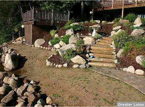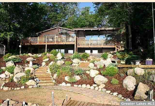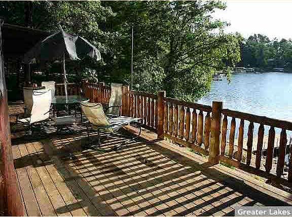 Enjoy sunrises and moonrises from this remodeled walkout property on Daggett Lake. Features include full glass walls to make you feel like you have a front row seat to take in the lake views. Lakeside of the home is extensively landscaped around the firepit, beach area and boatho