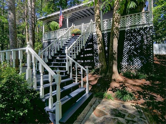 Nature lover's dream home-this private captivating cape cod is nestled on over half an acre between pastures and corp of engineer property with a beautiful walking trail to Lake Acworth, yet only 5 min from I-75, Cobb Pkwy, Downtown Acworth, shopping, restaurants and schools! Relax on the rocking chair front porch or on the large back deck overlooking a fenced and newly-leveled backyard. The cottage style interior has an open floor plan with ample windows and French doors, pine hardwood floors, built-in shelves and a large master suite with vaulted ceilings.