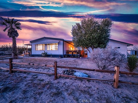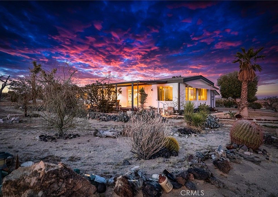 Affordable serenity found for those of you seeking a simpler way of living. Now is your opportunity to own this special property, in an ideal location, with the right amount of everything, at the perfect steal of a price! Embrace the tranquillity of having your own private fenced in retreat, nestled on multiple landscaped acres close to the vibrant Joshua Tree downtown community. Beyond the plenitude of outdoor spaces, the interior windows offer an abundance of natural light and a great view. This updated 3 bed/2.5 bath fully furnished home sits on 2.58 fenced acresThe home offers a modern, open floorpan, with beautiful finishes throughout and a detached 2 car garage and carport. You’ll love entertaining family, friends, and guests in this space. Located off the (highly-sought after) convenience of a paved road, it’s a very close commute to downtown, the National Park, and Palm Springs Airport. This (“manu-modernized-modularified”) gem is the new way to encapsulate all the upscale amenities and upgrades of designer homes into a more modestly priced home. Don’t miss your opportunity here.
