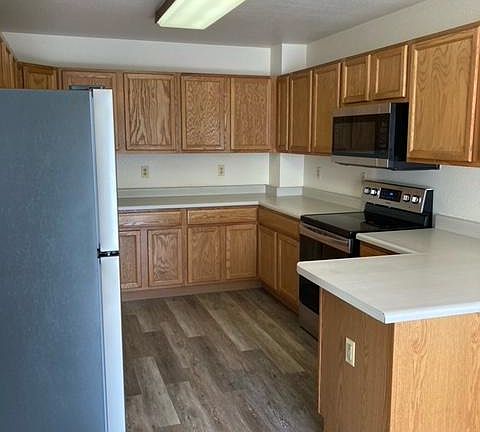 brand new flooring, new carpet, new appliances and attached one car garage. Back patio backs up to small park. Unfinished basement with washer & dryer hookups, (not included). Tenant pays for water, gas and electric. Pets under 45 lbs allowed at an additional pet fee added to the rent. No smoking allowed in unit.