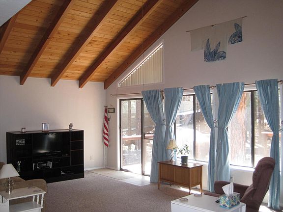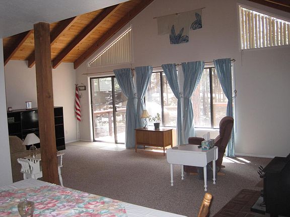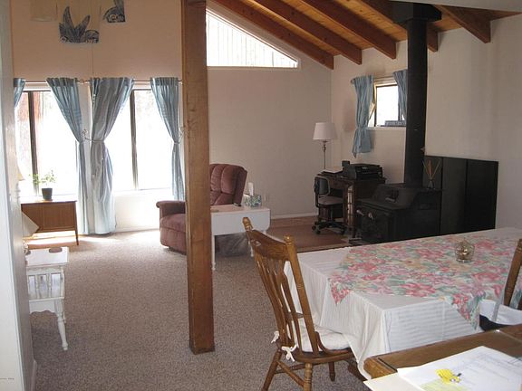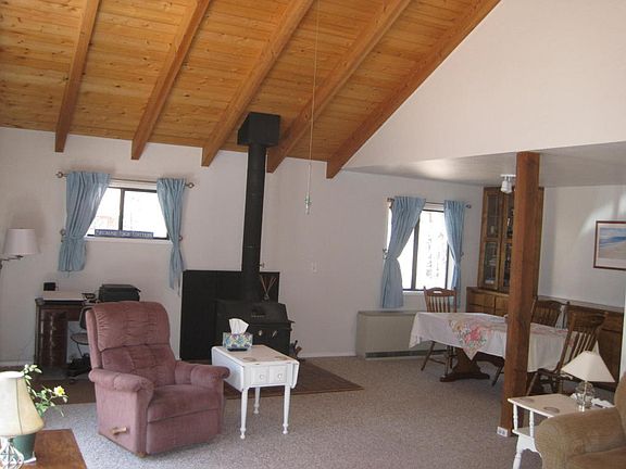 Cabin in Pinteop Lakes neighborhood with recreation community privileges. 3 bedroom, 2.5 bath home with large front deck is set back from the street with large, well treed lot for your outdoor enjoyment. Spacious great room with large windows,T&G ceiling and wood stove. Large dining area and efficient kitchen.Two bedroom and 1.5 baths down and master suite is on second level with private balcony. One car car port with side door cabin access, plus a large one car garage with loads of storage space. Home also has efficient ETS heaters in dining area and the bedrooms.