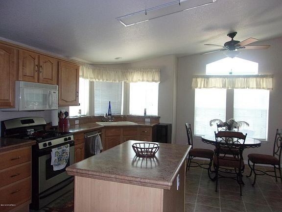 CAMP VERDE, Beautifully landscaped home with views. Corner lot location, easy care landscaping with drip irrigation. Sit out on the deck under the pergola and enjoy the sunsets. Deck has a covered barbeque area and a hot-tub. Perfect for entertaining. The 10x30 building with electric and water would make a great studio or home office. Interior of the home is open and inviting. Living room has gas fireplace and clearstory windows for added light. Kitchen has corner sink with bay windows and an island, a breakfast nook as well as a formal dining room. Large utility room with cabinets for extra storage and countertops. Guest rooms are spacious and have ceiling fans. Master bedroom has 2 closets and master bath has large walk-in shower and corner garden tub.