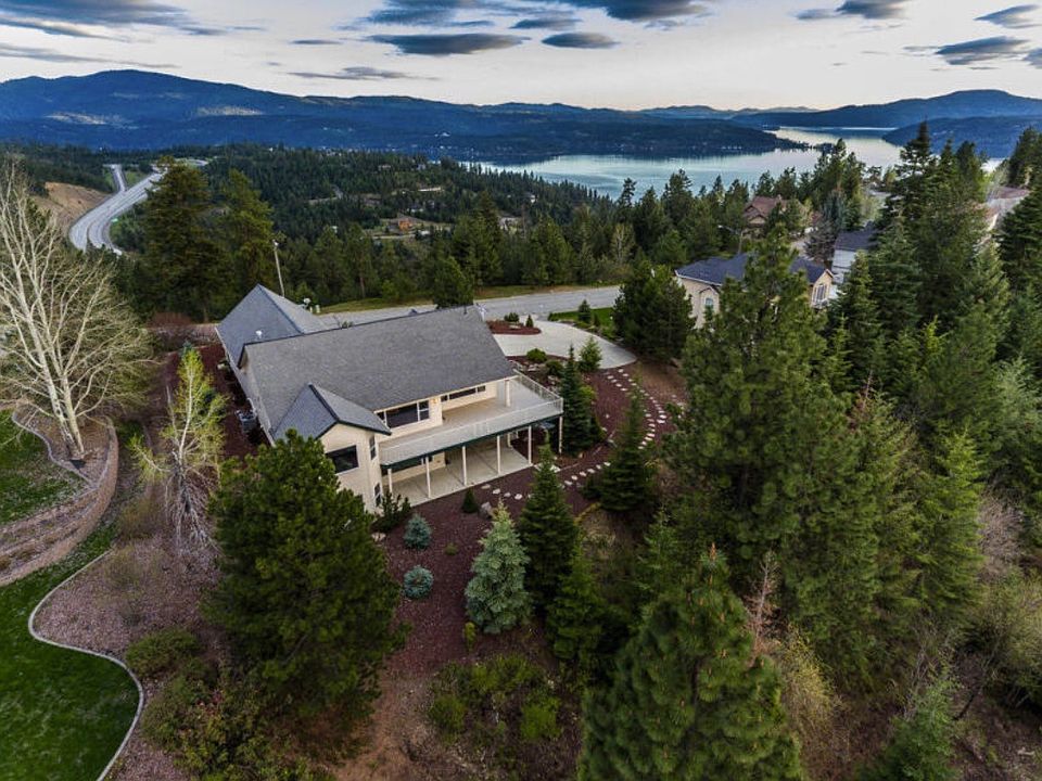 STUNNING VIEWS from nearly every room in this 3 bedroom, 3.5 bath, well-built home that sits atop Potlatch Hill. Imagine relaxing on the wrap-around deck with views of Lake Coeur d'Alene, downtown Coeur d'Alene, and even Mt. Spokane! Large windows, bright rooms, and a big kitchen make this a perfect family or entertaining home. Main floor includes a master suite and laundry. Walk-out daylight basement includes two more master suites and a family room - each with a door to another large patio with beautiful views! New heater, new A/C, 3-car garage, backyard pond.