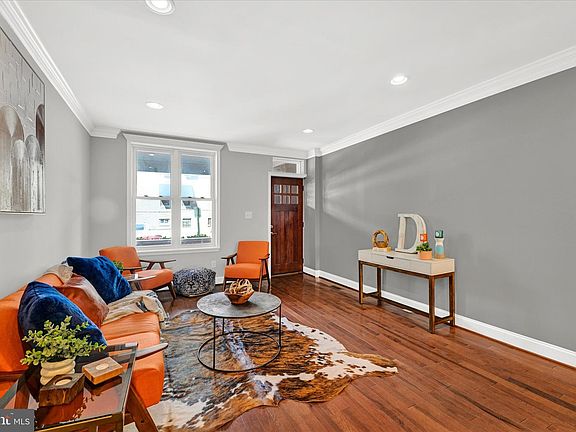 This beautifully updated Hampden townhouse offers 3 oversized bedrooms and 2 modern bathrooms, set within an open floor plan that maximizes space and light. The property features stunning hardwood floors that flow seamlessly through the living and dining areas, leading to a massive, updated kitchen equipped with contemporary appliances, ample counter space, and stylish cabinetry—perfect for culinary enthusiasts. Step outside to the rare and expansive rooftop deck, where you'll enjoy breathtaking views of the surrounding neighborhood, an ideal spot for outdoor gatherings or unwinding after a long day. The bathrooms have been tastefully renovated, providing a spa-like atmosphere with modern fixtures and finishes. The property also includes a highly coveted off-street parking pad, a true luxury in this vibrant neighborhood. Located just steps away from the heart of Hampden, you're perfectly positioned to explore the eclectic mix of boutiques, cafes, and local eateries that define the area. The home’s prime location offers easy access to all the charm and cultural attractions that make Hampden one of Baltimore’s most desirable neighborhoods. Roof & Deck - 2021 HVAC - 2016 Water Heater - 2022