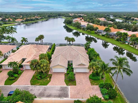 Absolutely the nicest view in all of IslandWalk! The home is located on a peaceful cul-de-sac with water views on 3 sides. Enjoy the unbelievable sunsets while lounging by your pool. Brand new high-efficiency air conditioner was just installed. The interior of the home was just painted. The home includes electric shutters on the rear of the home. When you're not unwinding and enjoying the view from your private heated pool, enjoy Island Walk's Town Center which offers an array of resort-style amenities, including a pool, lap pool, tennis courts, pickleball, bocce, a putting green, nail and hair salon, post office, car wash, gas station. Have lunch or dinner at your on-site Italian restaurant. The community calendar is packed with social events, classes, and activities. LOW FEES include HDTV, high speed internet, irrigation & lawn & landscape care making the luxury community of IslandWalk the favorite of Price-Savvy Buyers. This home is not just a property; it's an invitation to embrace the Naples lifestyle. Whether you're seeking a perfect place to work, play, or simply unwind, this gem offers it all.