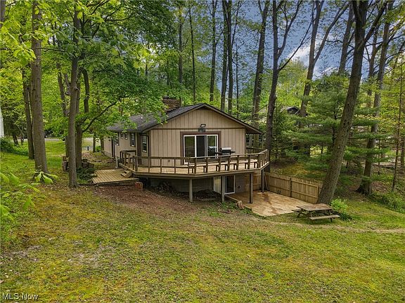 Welcome to 3747 Martha Road in Kent! This home is perfect for someone looking for a little privacy, a little fishing, a wooded lot, someone who enjoys water views, and your own dock! With 2 bedrooms on the main level this home offers easy first floor living with a cozy 2 sided fireplace! A deck right off the eat in kitchen to enjoy your morning coffee with views of the lake! A Master Bedroom with large closet and full bathroom as well on the first level. In the lower level there is a 3rd bedroom with a recreational room that also has a fireplace to enjoy on those cold Ohio nights! A new well was dug and put into service in November 2022, New Roof in November 2022, freshly painted and baseboards to boot!