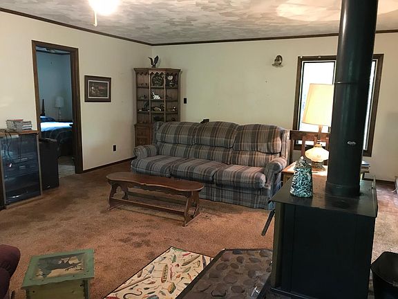 SHIMMERING WATERS! This year around family home is being offered for the 1st time and offers a Living room with a freestanding wood fireplace to warm you on those cold winter nights. The living room opens into the dining area with a bay window which offers diners a view of the surrounding woods. The kitchen is open to the living/dining area and offers ample oak cabinets plus a beamed ceiling. You'll spend your leisure time in the 3 season room overlooking the lake which offers knotty pine tongue and groove walls. The master bedroom and full bath with tub/shower and vanity offer single level living. The walk-out lower level is now being used as 2 additional bedrooms with access to one through the other. Originally this was a rec/family room with a 2nd bedroom. There is a handy half bath on this level, also. The 2+ car garage offers ample storage. Come and be mesmerized! An additional 7+/- acres across the road available.