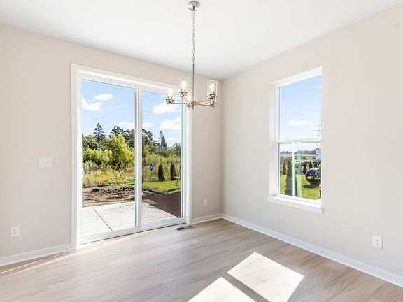 Estimated completion February 20206. The Ashland is a thoughtfully designed open-concept split-bedroom ranch plan. The Owner's Suite is in the back of the home, complete with a walk-in closet and private bathroom featuring a double vanity. The dinette is nestled and connects to the open kitchen and great room. An additional two bedrooms and a full bathroom are towards the front of the home. The mud room and laundry room can be found directly off the garage for added convenience. Black and white floor plan and rendering depict the actual home. Any color photographs are from previous models and are for representation only. Design, selections, and styles may vary.