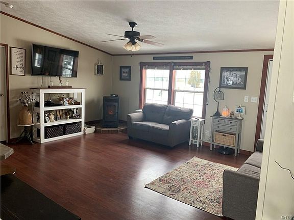 Pinterest Perfect! PLUS Storage Galore.. The current owners have made this a great home, all you have to do is unpack. This 3 bed, 2 full bath has been well cared for to include new kitchen appliances bought within the last year, new stain on cabinets, stone front breakfast nook, kitchen pantry faced with stone and the cutest wood doors, new flooring, black out shades and new ceiling fans. Off the laundry room you'll enter the mudroom & amazing extra pantry which is conveniently located in your heated 2 stall garage. There is no shortage on storage, owners installed shelving everywhere. Brand new pellet stove in living room makes this home super affordable to heat. Outside, sit and relax on your maintenance free deck. Super location close to the River and a short drive to Watertown.